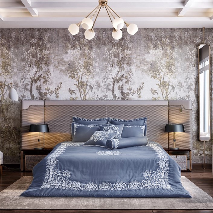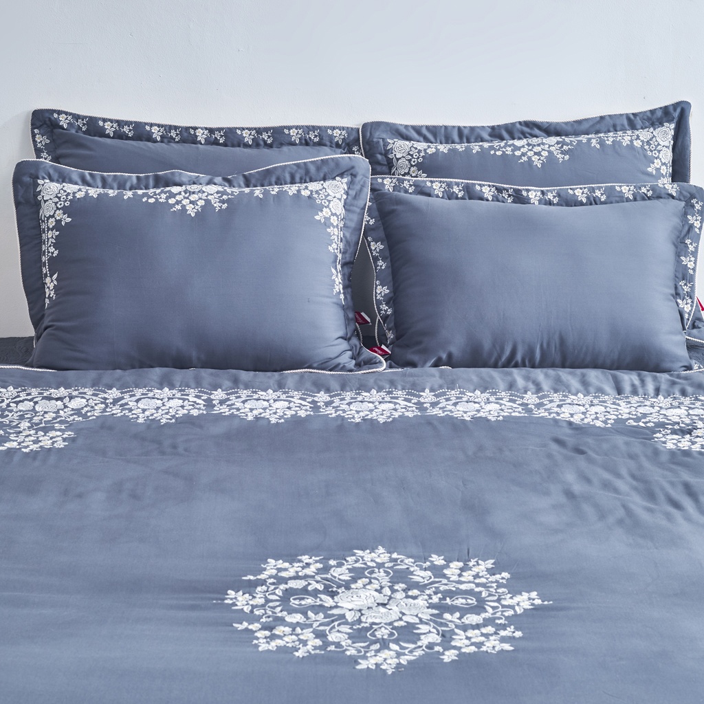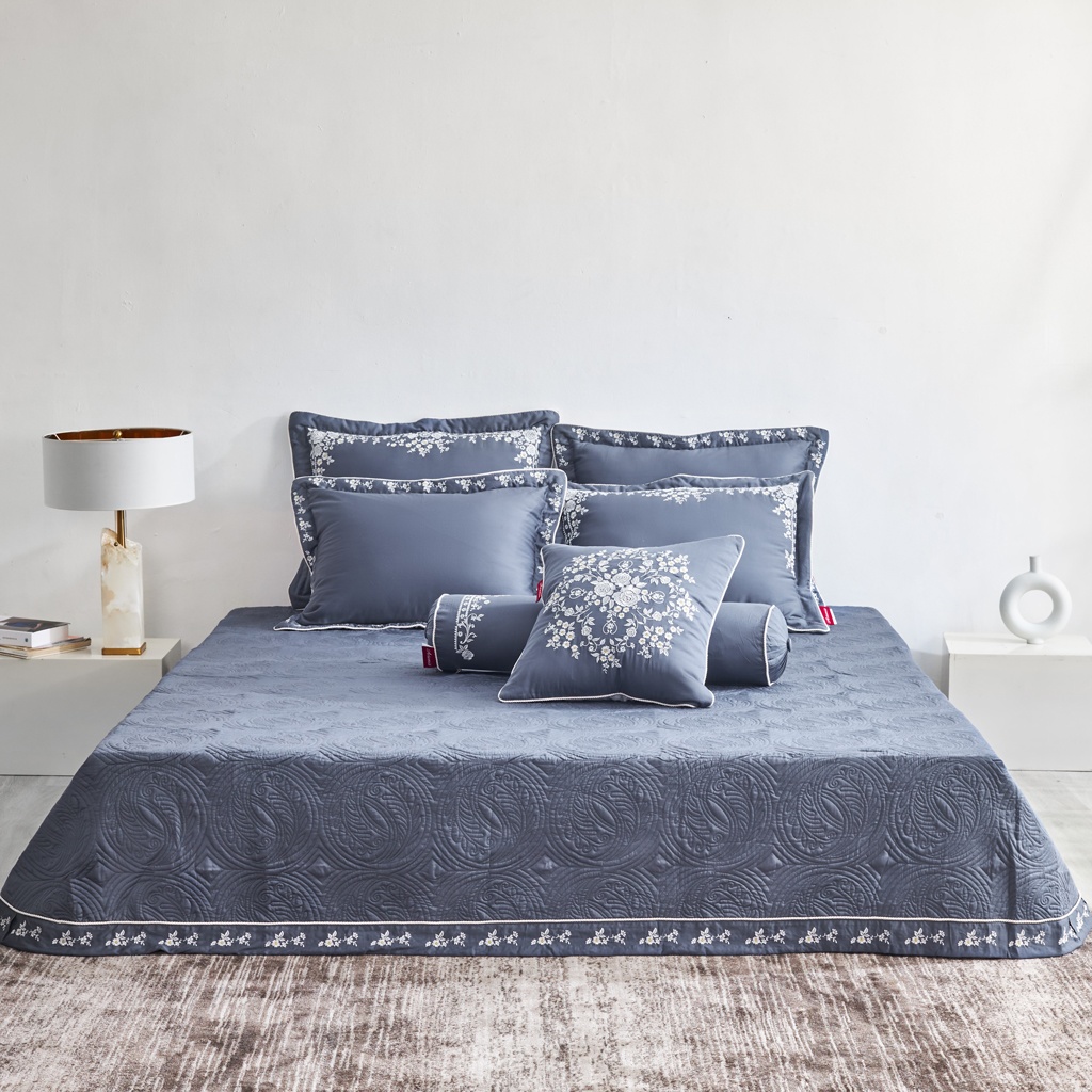 Màu xanh tím than luôn được ưa chuộng trong các thiết kế chăn ga bởi sự đơn giản, dễ kết hợp với nội thất phòng ngủ mà vẫn không mất đi sự sang trọng, lịch lãm .
