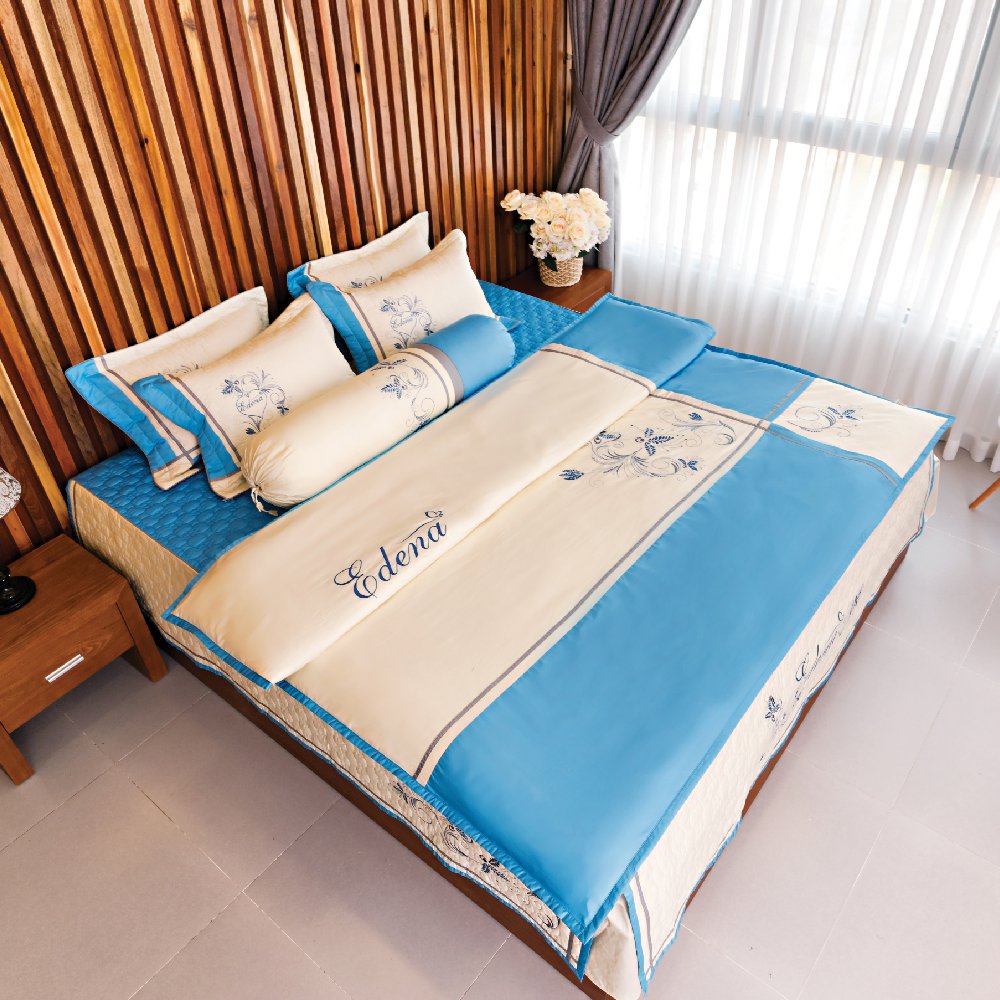 Edena sử dụng màu nhuộm cao cấp với công nghệ hiện đại, đảm bảo sẽ không bị lem màu, phải màu trong quá trình sử dụng. Kết hợp với đó là kỹ thuật chần gòn tinh xảo với các đường chần nổi tạo hình nghệ thuật, hoa văn đặc sắc, mang đến cho bạn cảm giác bồng bềnh hơn rất nhiều so với các sản phẩm khác khi sử dụng.