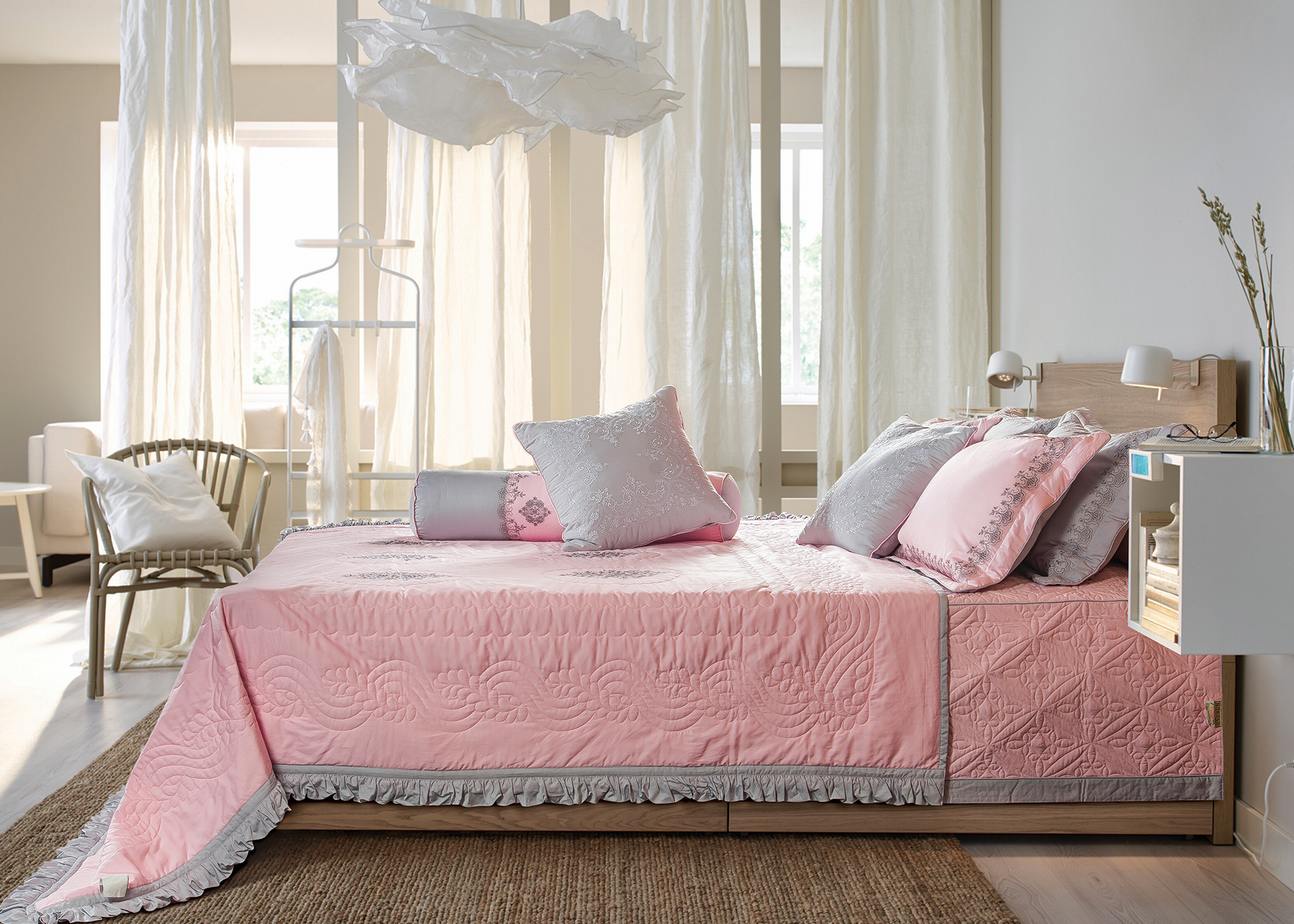 Mô tả: Nếu bạn muốn có một đám cưới theo phong cách Vintage thì đây là lựa chọn hàng đầu cho chiếc giường cưới của bạn. Trên nền vải Modal óng mượt là họa tiết ren được thêu tỉ mỉ, tinh tế. Sự kết hợp của màu hồng và ghi đem đến sự lãng mạn, trẻ trung nhưng cũng không kém phần sang trọng, cổ điển.
