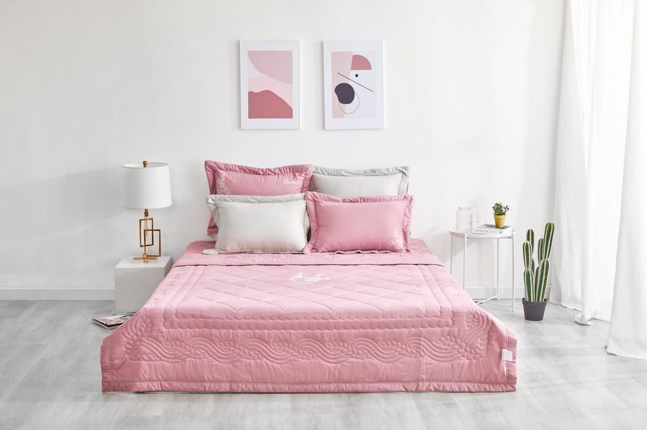 - Bộ ra gồm: 1 ra phủ / ra bọc / ra bọc chần gòn cùng size, 1 mền, 2 vỏ gối 45 x 65 cm, 1 vỏ gối ôm 80 x 100 cm.